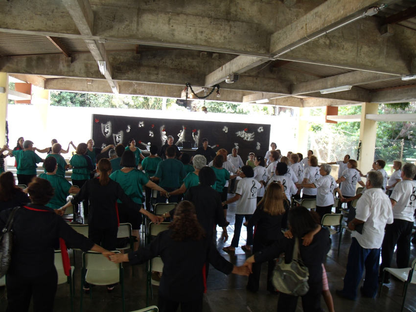 | Os Corais cantando juntos, de mãos dadas |